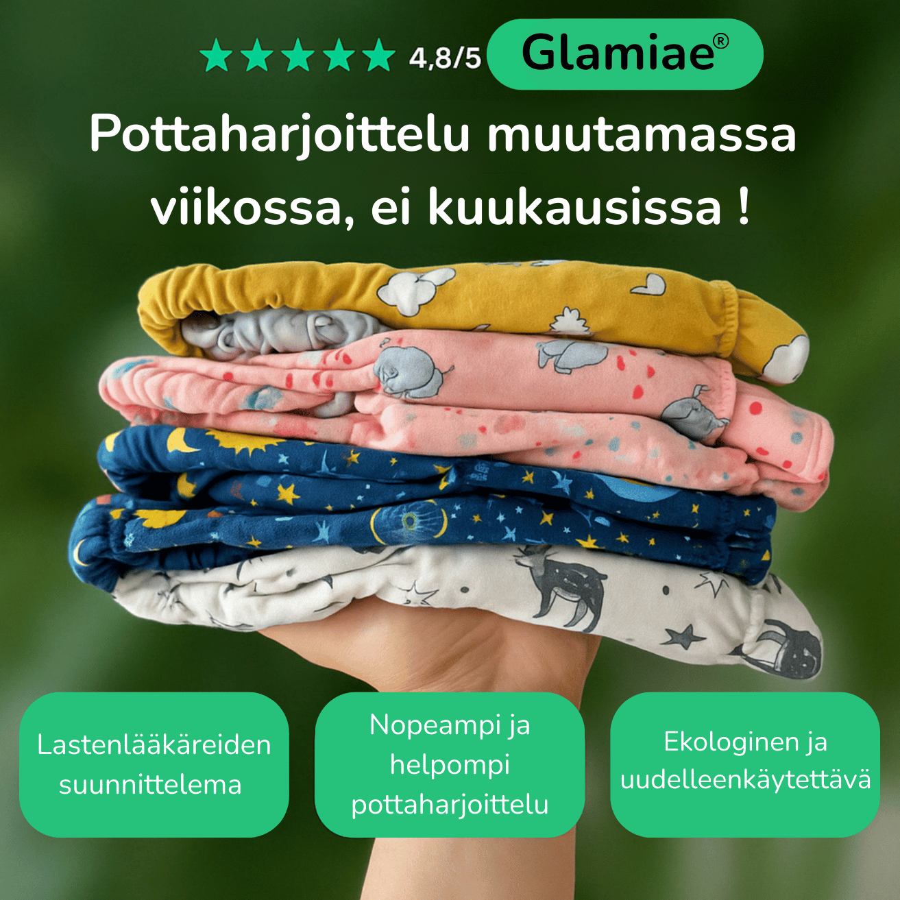 Glamiae-pottahousut auttavat lasta ymmärtämään, milloin on aika mennä potalle, samalla kun ne tuntuvat pehmeiltä ja mukavilta.